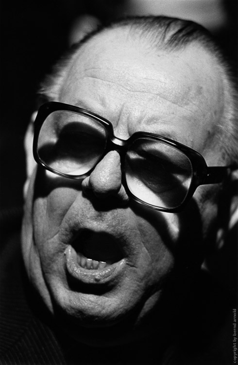 Freie Studienarbeit – Portrait des SPD Politikers Hans-Juergen Wischnewski "Ben Wisch" während einer seiner engagierten Wahlkampfreden 1987 in Köln.